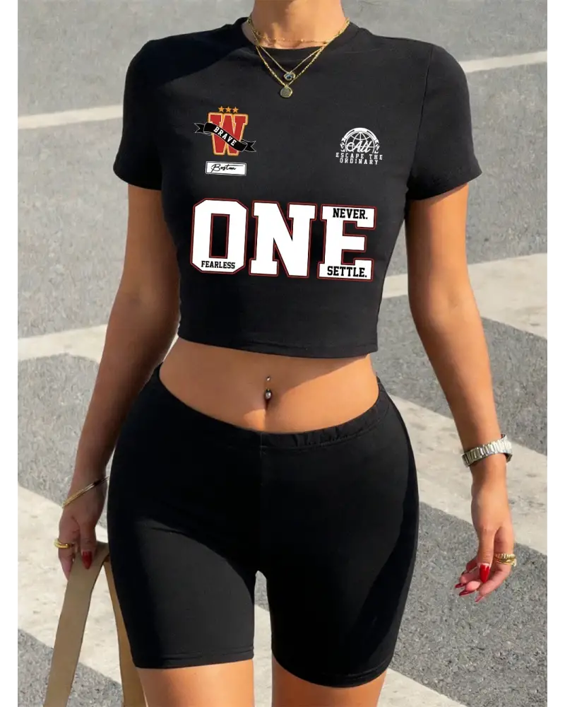 Yazlık Birleşmeyen Harfli Baskılı Babby Teelar Şortlar Kadın İki Parçalı Set Tişörtler Pantolo kaliteli malzeme ve konforlu kullanım sunan bir üründür. Günlük kullanım için ideal olup uygun fiyat ve hızlı kargo avantajıyla sunulmaktadır.