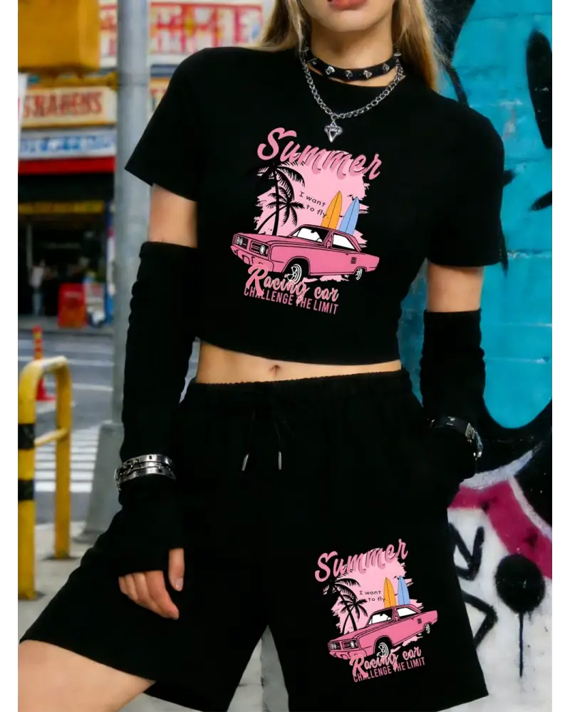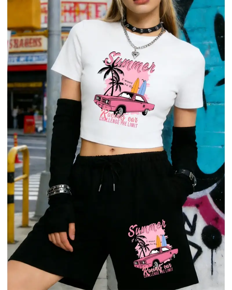 Yazlık Yarış Arabası Baskılı Babby TeeTişört Şort Kadın Seksi Tatlı İki Parçalı Set Diz Boyu Pant kaliteli malzeme ve konforlu kullanım sunan bir üründür. Günlük kullanım için ideal olup uygun fiyat ve hızlı kargo avantajıyla sunulmaktadır.