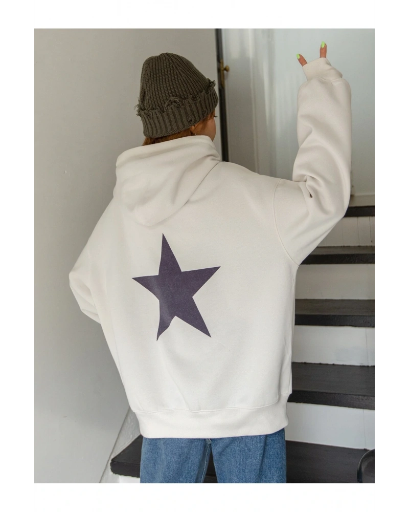 Yıldız Baskılı Damla Omuzlu Kapüşonlu Üst Bej