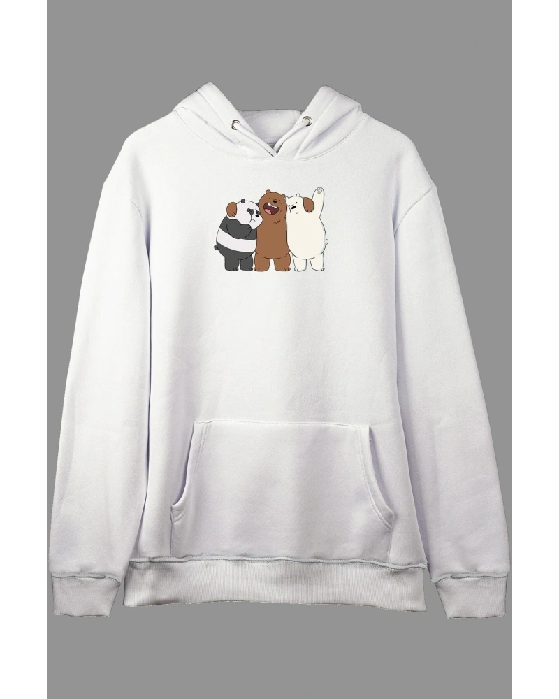 YQYQ----Oversize 3 Kafadar Ayı We Bare Bears Tasarım Baskılı Kapüşonlu Sweatshirt Hoodie Beyaz
