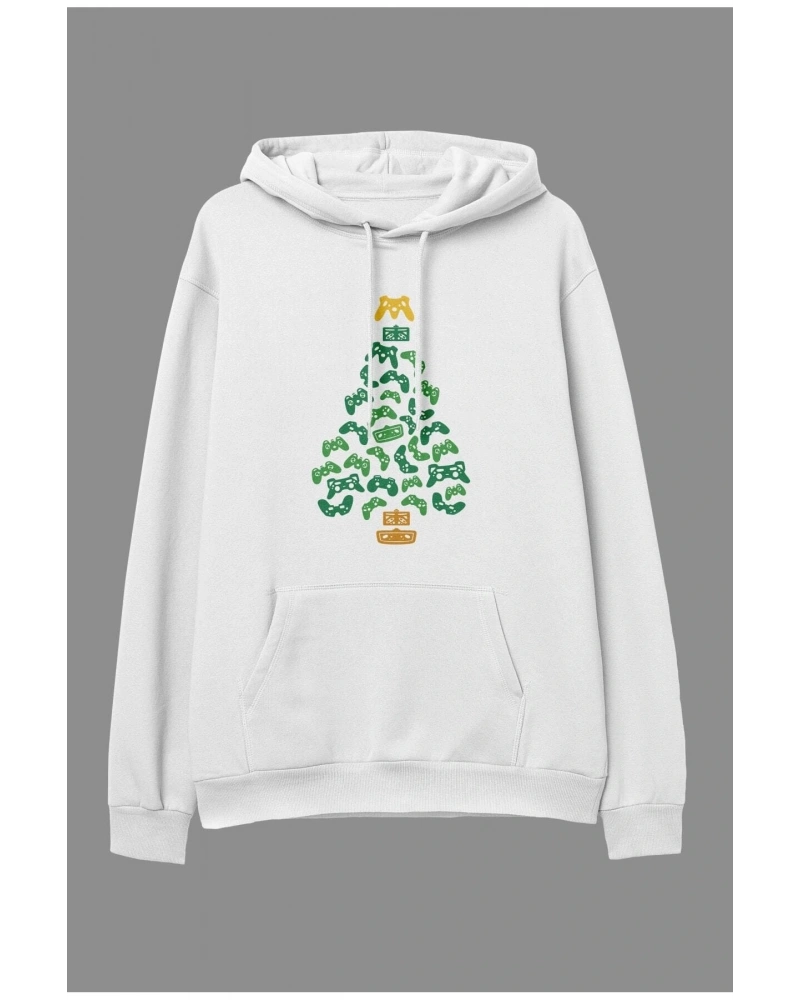 YQYQ----Oversize Çam Oyun Konsol Game Ağaç Yeni Yıl Tasarım Baskılı Unisex Kapüşonlu Sweatshirt Hoodie Beyaz