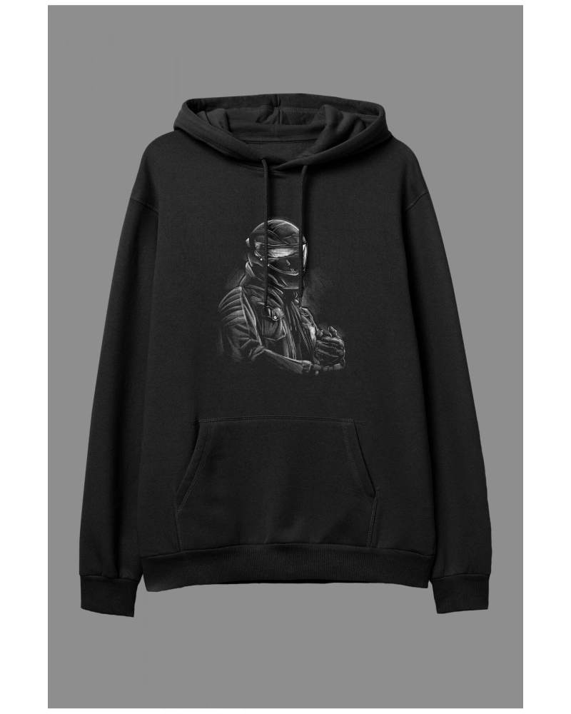 YQYQ----Oversize Yarış Motor Motorcu Tasarım Baskılı Unisex Kapüşonlu Sweatshirt Hoodie Siyah