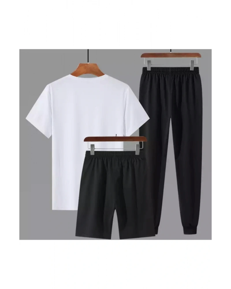 Yuvarlak Yaka Ter Tutmayan %100 Pamuk Yeni Stil Kısa Kollu Şortlu 3lü Erkek Eşofman Takımı